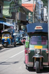 I tipici Tuk-Tuk di BangkokUn altro mezzo di trasporto chiave della città sono i “tuk tuk“, piccole biciclette o carri a due o tre ruote, molto tipici nei paesi asiatici. Bisogna fare attenzione al numero di fermate che si desidera fare, poiché molti conducenti fanno fermate in alcuni negozi da cui ricevono una commissione per ogni acquisto realizzato dai turisti.