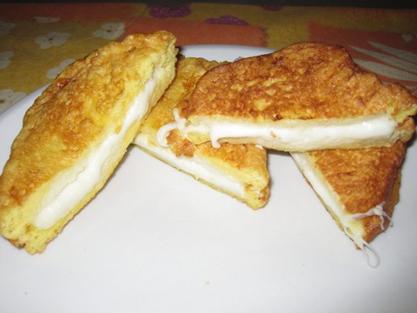 preparazione: tagliate la mozzarella a fette piuttosto spesse e appoggiatele sulle fette di pane. Richiudete con un’altra fetta di pane formando dei panini, premeteli e passateli poi nella farina e infine nelle uova, che avrete sbattuto con del latte, sale e pepe. Quando sono ben intrisi, scolate e fate dorare da una parte e dall’altra in olio bollente. Fate asciugare su carta assorbente e servite ben caldo.