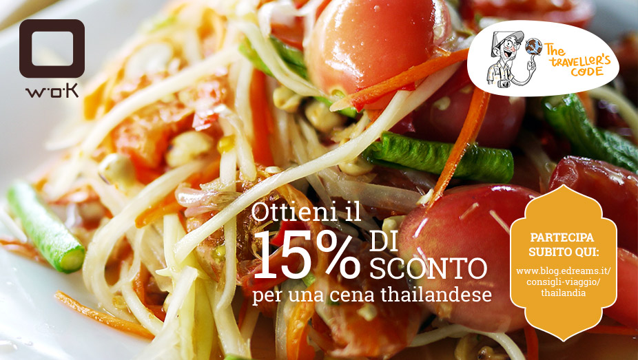 3. Vi invieremo via mail un voucher della catena di ristoranti W.O.K. per usufruire el 15% di sconto sulle specialità Thai presenti nel loro vasto menù.