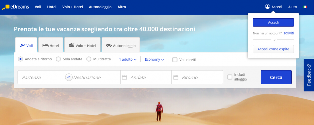 • vai sul sito edreams.it