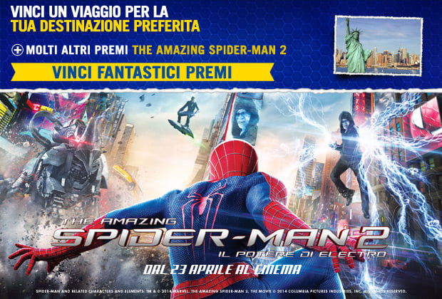 Con l’uscita del film “The Amazing Spider-Man 2 – Il potere di Electro” vogliamo darti l’opportunità di vincere un viaggio per la destinazione che hai sempre sognato di visitare. Se cerchi ispirazione potresti pensare a New York, la città dove abita il protagonista del film, Peter Parker, che quando si trasforma in Uomo Ragno vive innumerevoli avventure per proteggere, come ogni supereroe che si rispetti, gli abitanti della Grande Mela dagli attacchi di perfidi e pericolosi individui malvagi.