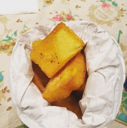 Di solito la polenta è un alimento che si associa al Nord Italia ma viene apprezzato anche in Puglia. A Bari queste fette di polenta fritta sono uno dei piatti più famosi di Steet Food, soprattutto in centro.