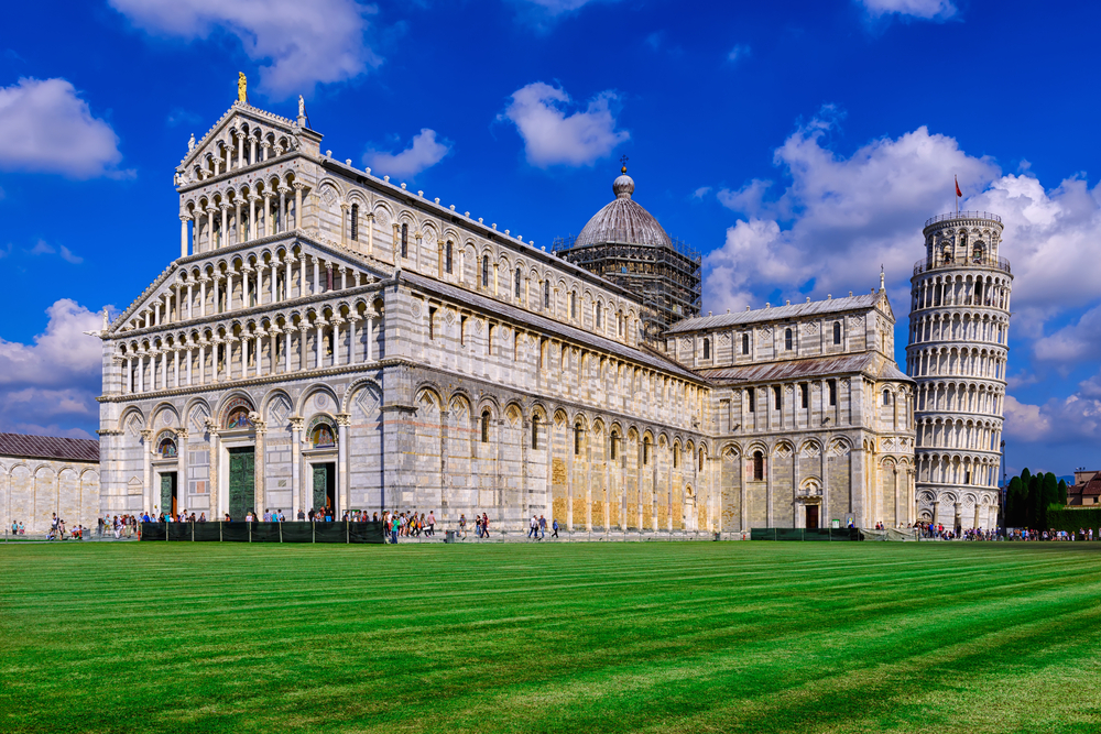 Il Duomo di Pisa, ovvero la Cattedrale dedicata a Santa Maria Assunta, è un magnifico esempio di architettura romanica pisana in cui si fondono elementi classici, normanni, bizantini, paleocristiani e islamici, dovuti ai contatti commerciali che a quei tempi i pisani avevano con il mondo arabo. La sua costruzione iniziò nel 1603, sotto la direzione dell’architetto Buscheto, come testimonianza del prestigio raggiunto dalla Repubblica Marinara di Pisa al suo apogeo.