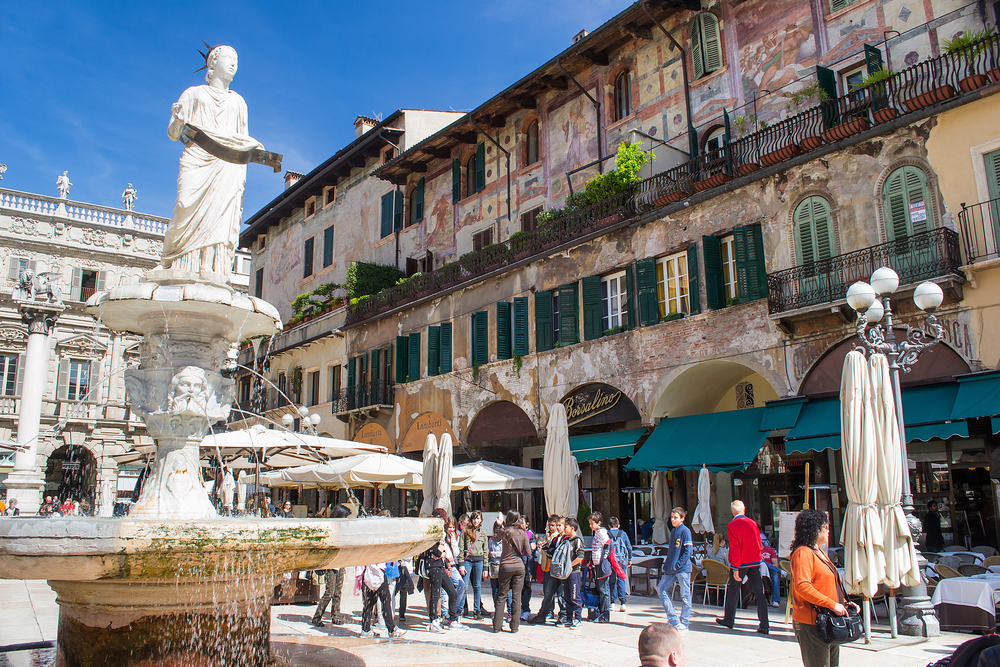 A pochi metri dalla casa di Giulietta raggiungi piazza delle Erbe, la piazza più antica di Verona, cuore pulsante del commercio dove sorgono palazzi risalenti a varie epoche storiche tra cui la Casa dei Mercanti, le facciate colorate delle Case Mazzanti e la fontana di Madonna Verona. Qui nel weekend, durante il mercato di frutta e verdura, i veronesi si incontrano per fare acquisti o per gli aperitivi serali.
