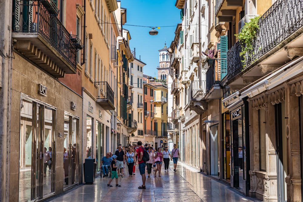 Verona non è solo una città ricca d’arte e cultura, ma è anche la meta ideale per sbizzarrirsi con gli acquisti. Via Mazzini collega Piazza Bra e Piazza delle Erbe ed è la via dello shopping per eccellenza. Una sequenza ininterrotta di eleganti negozi  in cui troverai una vasta scelta di articoli: dall’abbigliamento alla profumeria, dai libri d’epoca ai tessuti pregiati e tanto altro. Passeggiando lungo questa via non avrai solo la possibilità di curiosare tra le vetrine, ma anche di scoprire alcuni edifici antichi, come ad esempio la splendida Loggia Arvedi in stile neoclassico.