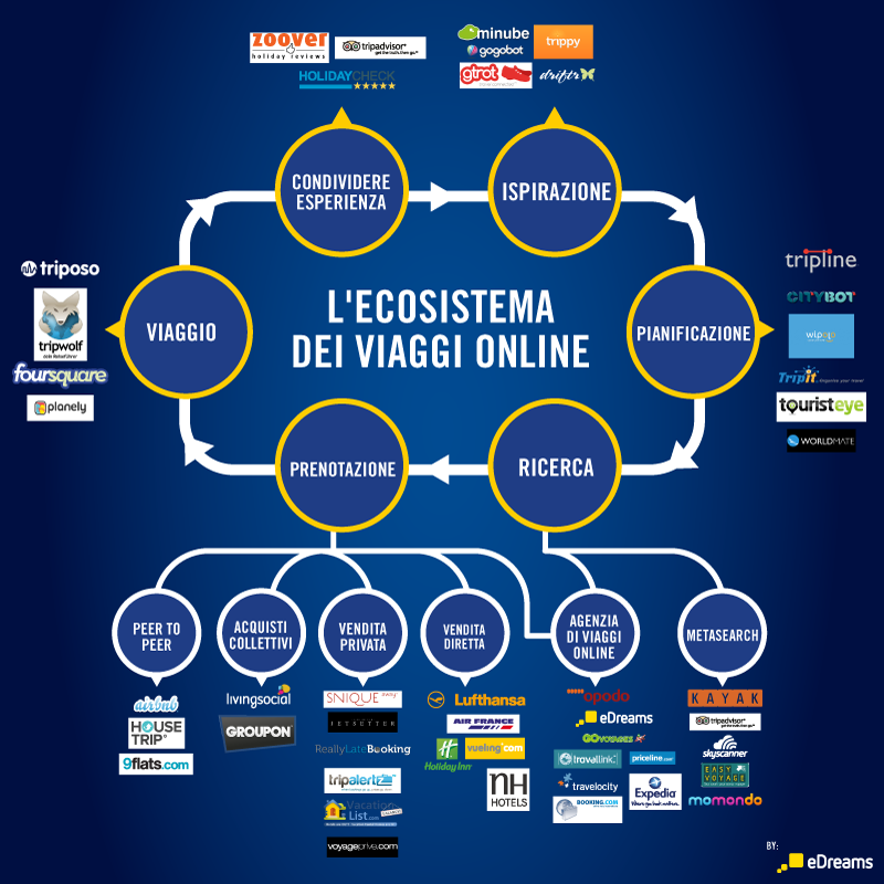 eDreams raccoglie in questo studio le diverse tappe che affronta l’utente nel processo di acquisto di un viaggio online e alcuni del pricipali agenti coinvolti.