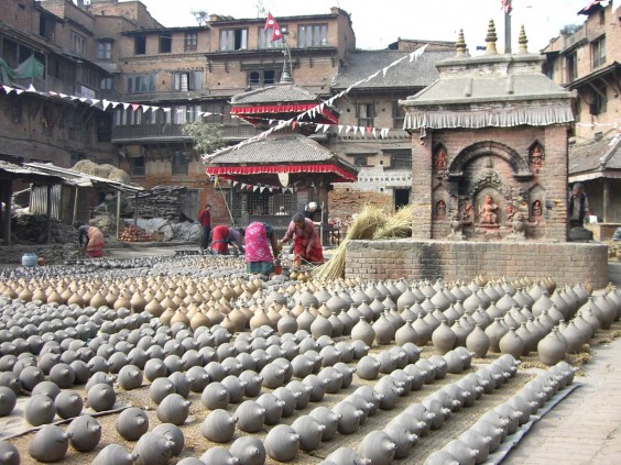 A Bhaktapur c’è una piccola piazza ricoperta di vasi d’argilla.
