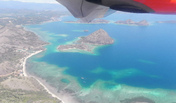 Nella tasca dell’aereo ad elica c’è il foglio delle preghiere in due lingue, voliamo bassi sullo sterminio di isole dannatamente belle e selvagge che ora riconosciamo una per una, avendole girate a nuoto palmo a palmo, con la nostra sacca stagna con dentro i soldi, i vestiti asciutti e, appese fuori, le scarpe, perché con quelle correnti non si sa mai. Penso al fido “capitan”Ahmet con la sua barca a nostra disposizione per pochi vergognosi euro, pronto ad accoglierci  a bordo con un the caldo, felice di stupirci con nuove incontaminate barriere e nuove esperienze, come quel tramonto a Kalong, quando di colpo le volpi volanti sono partite tutte assieme, oscurando per 20 minuti il cielo sempre più buio. E poi delfini quasi ogni giorno, draghi di Komodo, tartarughe emerse a respirare, aragoste, acqua invisibile, come stessimo volando sui coralli, sabbie bianchissime, e i colori eclatanti del reef più ricco del mondo. E anche bagni di folla, un’allegra umanità pulsante tra odori, colori, rumori, fumo di bancarelle, pesce che salta nelle ceste, grida, bambini, schizzi di fango, occhi, sorrisi, sudore, brulicare di vita. Proprio sotto di noi un banco di cetacei ci dà ancora un ultimo saluto, guizzando a pelo d’acqua. Generosa fino all’ultimo, grazie Flores, grazie.