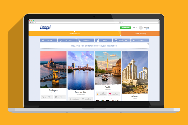 domingo! attraverso un’ interfaccia intuitiva, accattivante e di grande impatto visivo, permette all’utente di organizzare il proprio viaggio in un solo click: cercare le destinazioni filtrandole per categorie (spiaggia, città, cultura, natura, vita notturna o famiglia), scegliere le mete in base ai viaggi fatti dai propri amici, integrarle con offerte speciali e tariffe aeree, confrontare i prezzi e infine prenotare.