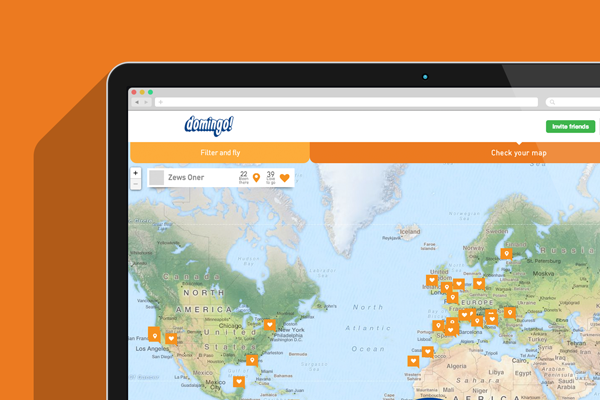 Per accedere a domingo! è sufficiente avere un account Facebook, non è  necessario fornire nessun altro dato personale ed è inoltre possibile invitare i propri amici a entrare nell’applicazione, condividere con loro le esperienze di viaggio e selezionare i luoghi  visti e quelli che si vorrebbero visitare in futuro. Consultando la mappa si può scoprire dove sono già andati o vorrebbero andare i propri amici per poi chiedere loro consigli e raccomandazioni.
