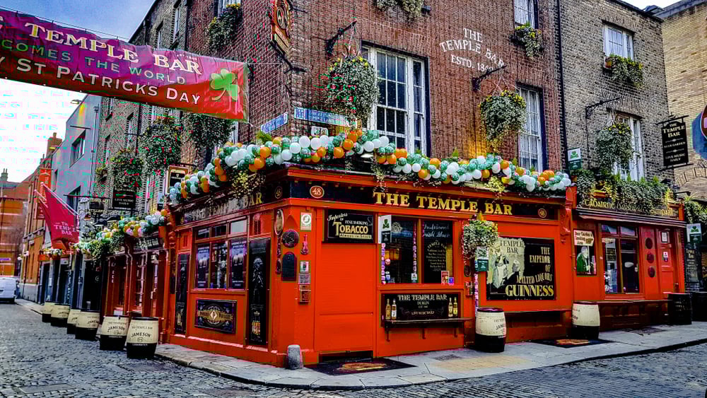 Temple Bar è la zona più frequentata dai turisti durante il Saint Patrick’s Day a Dublino: qui si concentra la maggior parte dei pub storici della capitale, ma è anche la zona più affollata e rumorosa, con una vera e propria folla che riempie le strette strade tra artisti di strada e tanti intrattenimenti. Non potrai resistere a una pinta di Guinness in uno dei suoi pub storici!