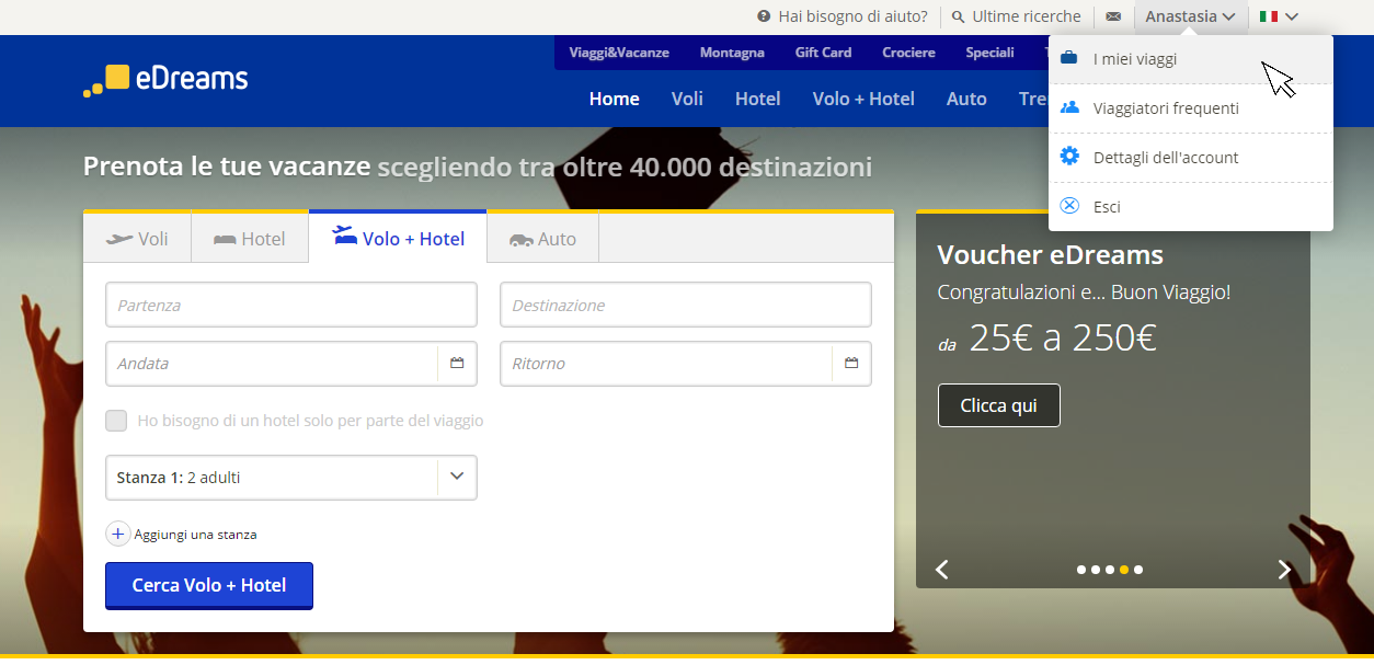 1. Entrate su eDreams e cliccate su “Accedi”
