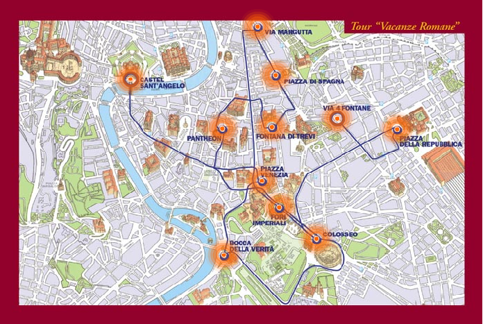 In particolare esiste un tour grazie a cui è possibile fare delle soste nei i luoghi dei “ciak” più importanti di “Vacanze romane”, ammirando, oltre ai monumenti, le foto estratte direttamente dalle scene del film, che il proprio accompagnatore, il driver, si occupa di descrivere in ogni loro particolare.