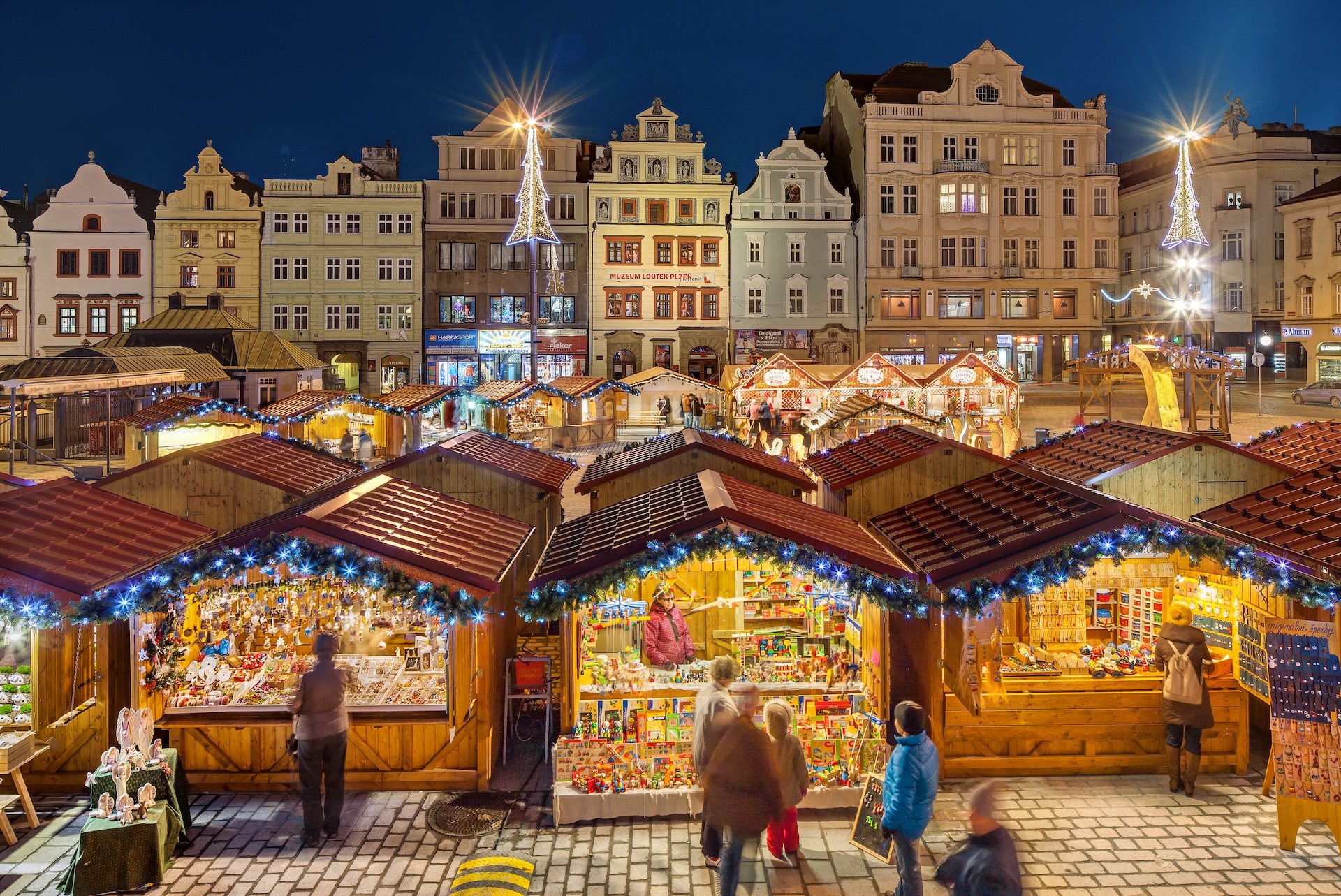 Plzeň (Pilsen), patria della celebre birra Pilsner, sa come festeggiare in grande. La piazza principale, Náměstí Republiky, si anima con bancarelle di legno che vendono decorazioni fatte a mano, candele e dolcetti locali. La Cattedrale gotica di San Bartolomeo domina la skyline, e dalla sua torre si gode una vista spettacolare sul mercato.