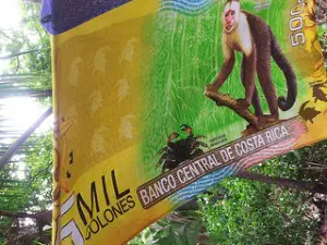 Costarica banconoteUn esempio? La banconota da mille colones raffigura un cervo sullo sfondo di un prato fiorito, dove troneggia uno stupendo albero di guanacaste.Un simpatico perezoso (bradipo) occhieggia tra fiori multicolori e fogliame verdeggiante sui diecimila colones del Banco Central de Costarica. E così via, in un caleidoscopio floreale e faunistico che non è usuale abbinare alle grigie colorazioni dell’economia e della finanza.